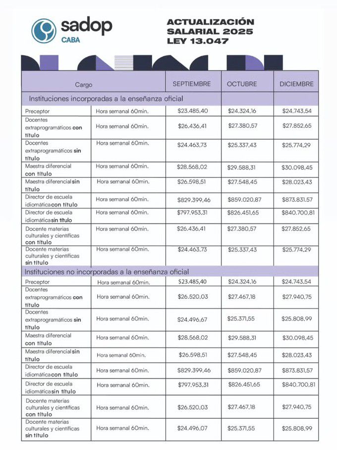 Este acuerdo, firmado por el Sindicato Argentino de Docentes Privados (SADOP) y las cámaras patronales, forma parte de una política para proteger el poder adquisitivo del sector y se suman a los aumentos ya otorgados anteriormente.